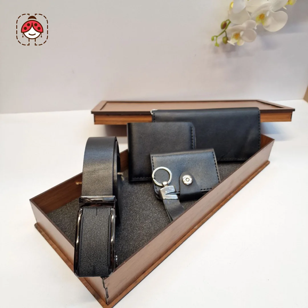 - ست شامل کمربند- کیف پول- کیف جیبی -جاکارتی و سر کلیدی